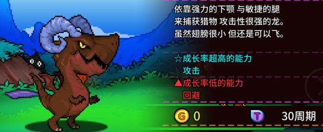 它们是霸王龙的前身,它们拥有超高的攻击力属性成长,依靠其强而有力的下颚可以碾碎一切阻挡你前进的敌人。但是其回避属性的成长较低,很容易受到敌人的正面攻击。