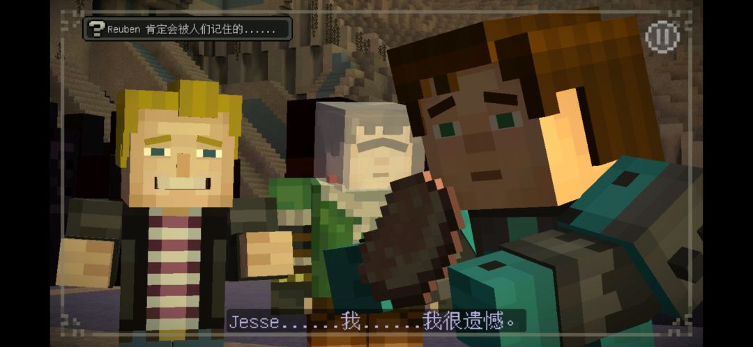 这个游戏玩了有个一两年了,从行尸走肉一直到Minecraft storymode,玩法与操纵风格我也特别喜欢,现在Minecraft storymode也支持安卓9.0以上了,这个游戏玩到后期也是故事丰富十足我的感情也带入其中 直到两季游玩结束以后我选择了让jesse 和 petra一起出去探险了,我也发现最后自己居然爱上了petra,然而这些不是最主要的,在这游戏里最令我难忘的角色就是小猪reuben 在第四章中末尾决战凋零风暴的时候 眼看主角就要被吞噬了 就在这时候它挺身而出将主角的附魔武器 用嘴调给主角 最后坠入深渊不幸牺牲,直到凋零风暴毁灭之后 我看着那块猪肉自己留下了伤心的泪水。也要感谢两名老岩石之令成员的牺牲,没有你们我根本无法做到这一步!也感谢T社为我们创造了一个接着一个身临其境的故事。