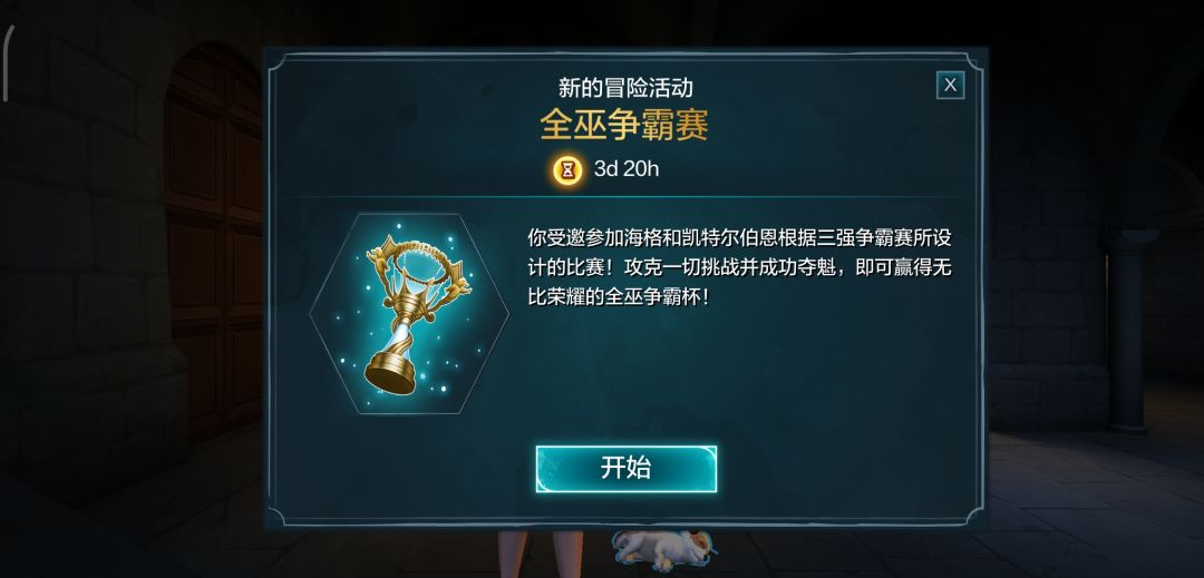 镇楼把自己脏乱差的宿舍照片放上,右侧书架上已经摆上了全巫争霸杯,还是挺好看的,点击收取体力,会蹦出金币(仅仅是看看)。现在开始大概盘点剧情: 这次剧情是全巫争霸赛并不是三强争霸赛,有点可惜,不过还是可以的。 你要通过三场比赛来和你的同伴争取奖杯🏆,争取奖杯的过程中,你会看到你朋友不太光彩的一面,尤其是安德烈。你在剧情中的选择会被你的三围等级所影响,这里建议三围等级是29/29/29。 第一个选项是你的勇气值达到29后,你可以拒绝梅鲁拉想和你组队的要求。这里有没有小伙伴过来分享下,因为我拒绝了梅鲁拉组队,所以在第二场比赛骑扫把时她不停的干扰我(动画很像飞行课俩人单挑的动画),我比较想知道如果你选择了你俩组队她还会干扰你吗? 另外一次的选择机会,是需要你的同理心达到29,不过其实没啥用,不过是在邓布利多面前帮海格和你的神奇动物学老师说话(不好意思我实在记不太清他的名字了,我检讨。。。)。 只要你走剧情最后肯定会拿到奖杯的,不用担心。过程中有两个地方印象挺深的,一个是憨憨巴纳比,这厮虽然日常憨憨但这次还是成功把我逗笑了~除了在第一个任务中围着桌子追嗅嗅那段,还有个图: