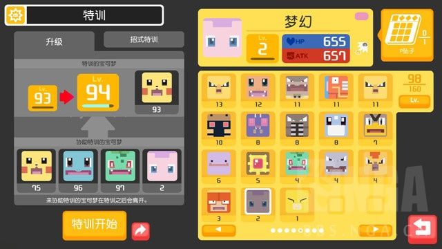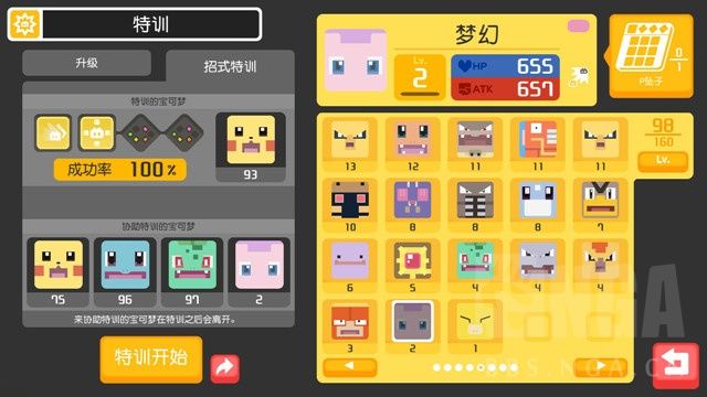 特训可以提高依靠其他精灵或同种精灵的帮助,提升经验或者改变技能。帮助特训的精灵,在特训后会离开。(你们不要说吃宝可梦拉!)后期刷水炮技能必须依靠特训。