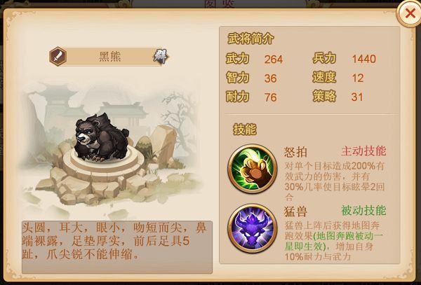 于是分析得出,曹操传0元党可得武将有曹操、大乔、陈宫、于禁、华雄五人以及黑熊。因为曹操传的剧情可以循环去做(周目),所以,陈宫、于禁、华雄可以成长到5星。许田副本是每日都可完成一次,因此黑熊的成长速度最快。曹操传五星武将等于210颗碎片,所以五星黑熊只要42天即可获得。往后许田副本产出的黑熊碎片就是可以转换成武将原石,用于武将原石商店兑换其他武将的碎片或武将升阶石。(武将进阶需要一点碎片,数量不多,总共40多片,所以要适当预留一点)