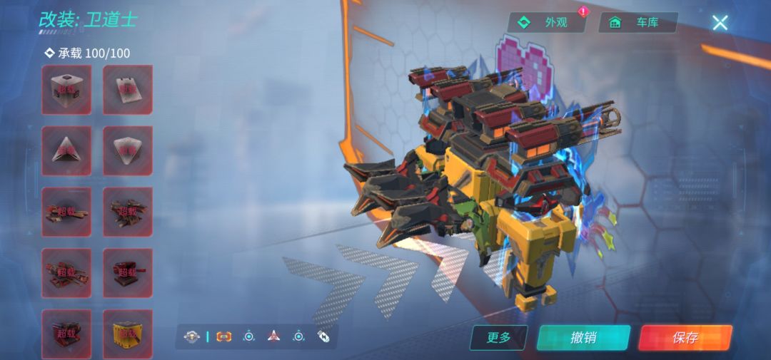 以上为车的全貌。卫道士采用双喷+大盾+双斥星+索隐的配置,带有双小腿与大力神直连核心的逃生机构。分享一个红石的无敌点位,在中端局对手无配合场极为强大