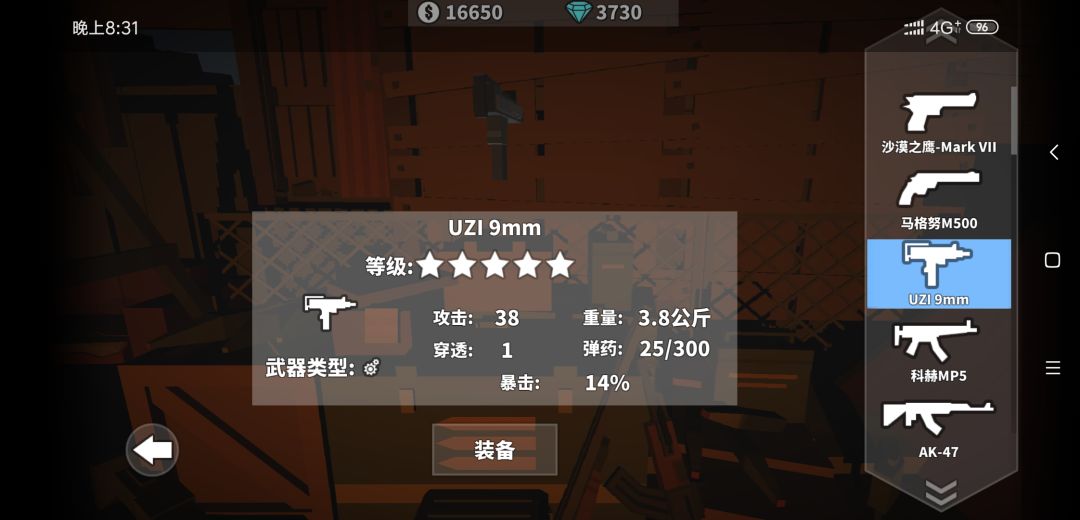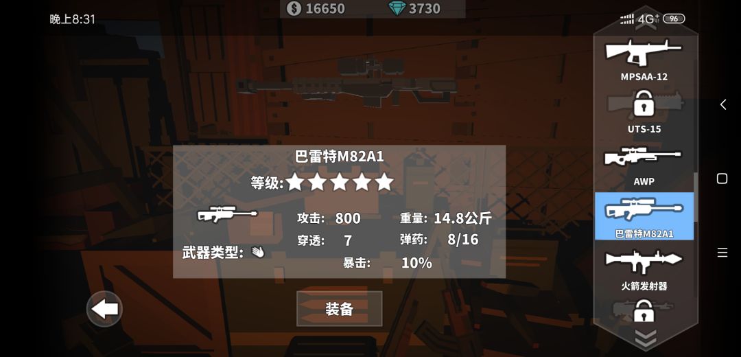 我不咋用的武器:沙鹰,子弹马马虎虎,特工擅长,有兴趣的小伙伴可以一试,可是伤害穿透都中庸。