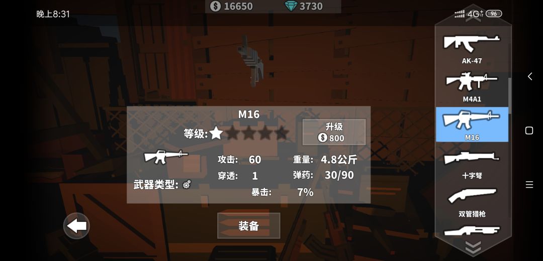 ✔M16,弹容介于AK M4之间,伤害可观,穿透比不过AK,可是有轻微击退效果。是把好枪!