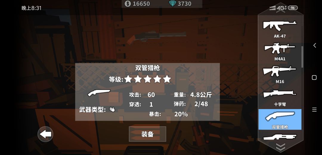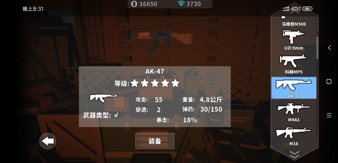 重点推荐!*AK**:第二天签到获得,良心!穿透高,威力在前期算中上,暴击还不错,把怪拉好拿AK一顿猛扫,那爽感!唯一缺点就是子弹太少了。