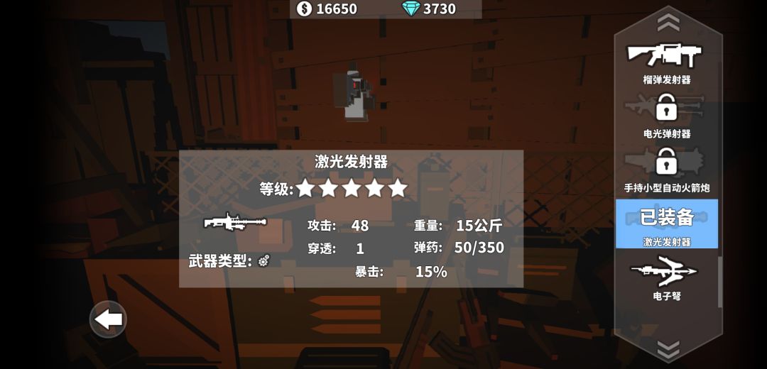 有三把360小时的没解锁,先不谈。有些枪没升级,见谅。防御模式7/15/25解锁十字弩,左轮(马格姆),留蛋发射器。前面两个真不推荐,弓弩类只有后面的电子弩配蛙人才舒服。左轮在前期看似伤害和穿透都不错,实则很中庸无用,AK才是你的好伙伴。***确实是一个比较容易获得的AOE武器,伤害在线具体看图,就是有点重(重量超过10公斤都是重型武器,机器人这个角色不怕重2333)当你有AA12和AK就很好过,攻略有朋友之前写过了,论坛下面找找。