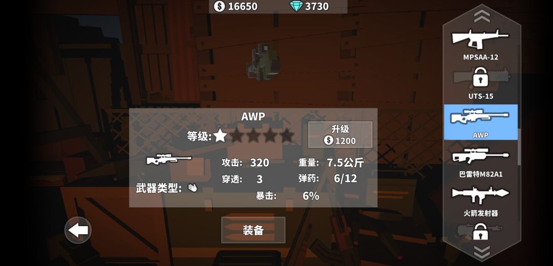 awp ,一把狙,威力中等,你真想玩狙不如攒着买大炮(***),伤害中上穿透高,还带拉视角功能(RPG也有)不建议入手