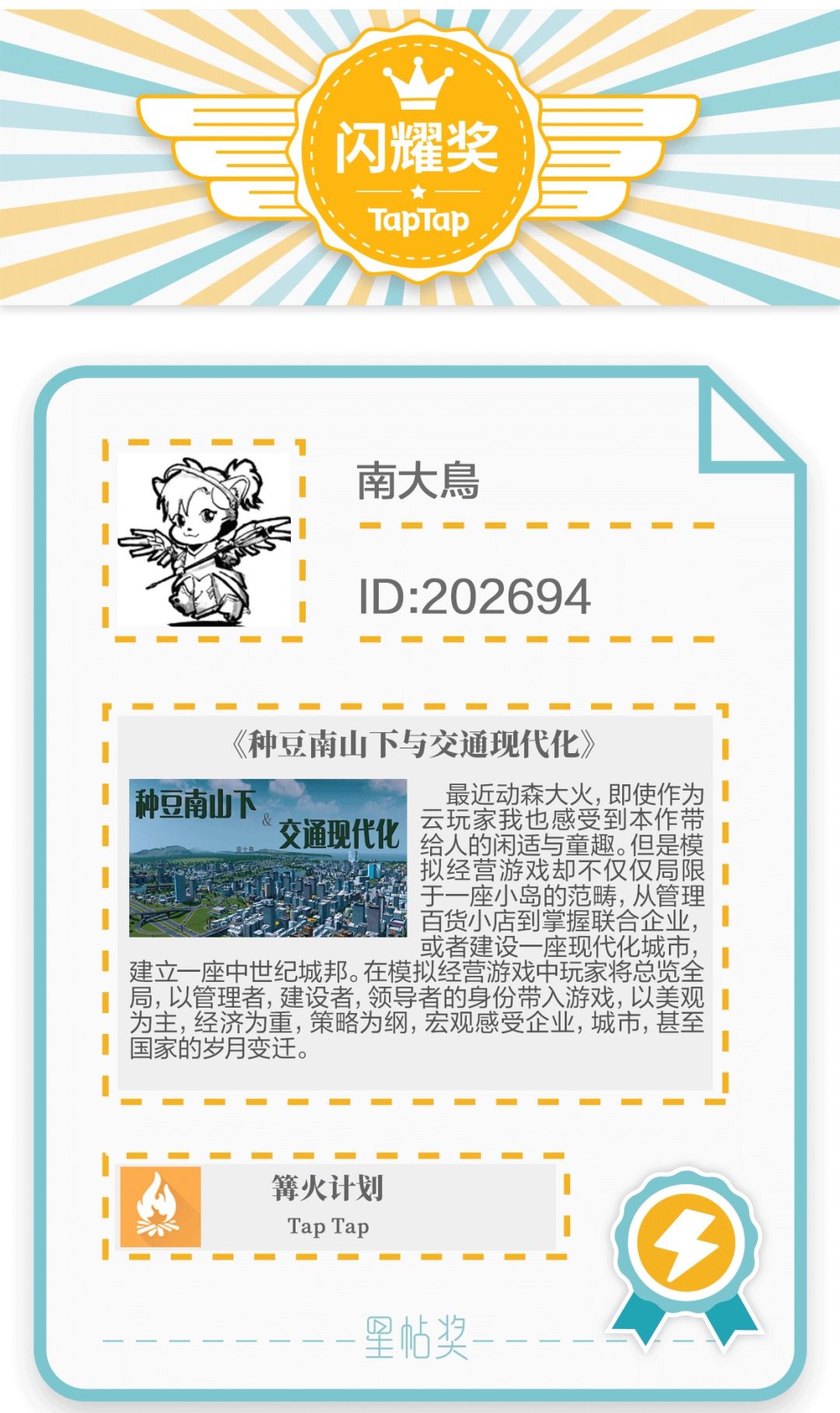 「星帖奖」栏目是为更好地挖掘 TapTap 游戏爱好者的优质内容,提升 UGC 影响力,鼓励优秀内容贡献者而创。