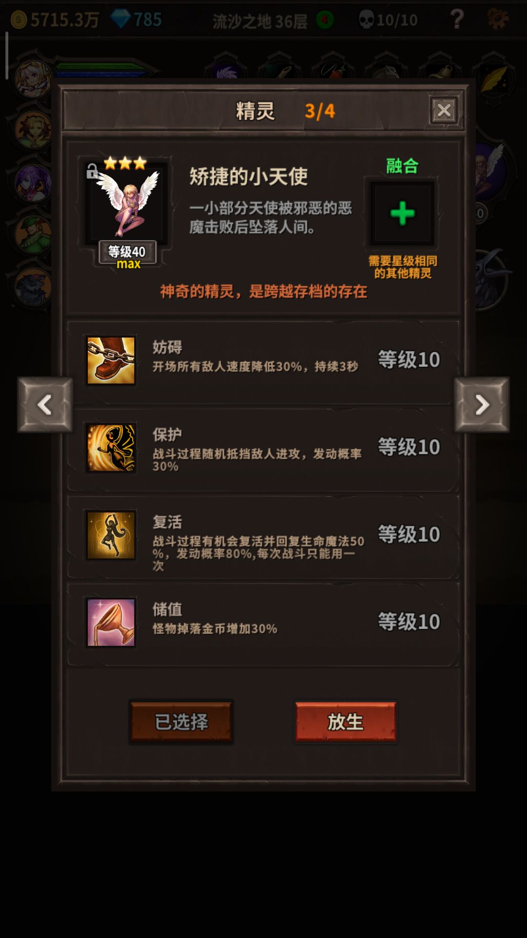 买三星精灵的时候先备份,看技能差不多需要的就重新备份保存再买另一个,我500钻买了一个,备份保存,300钻买了一个,然后一个升40融合。两个三星精灵四个技能里最少五个都需要的技能,如果有一个或两个共同的,融化起来会容易很多。从一星升的太麻烦了,每次都要升40融合。