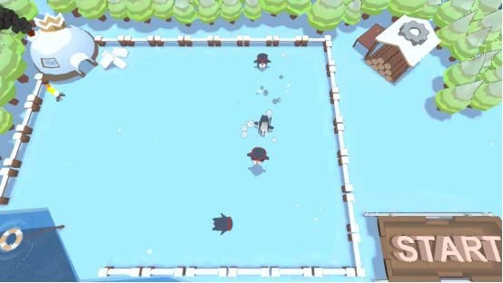 顾名思义,即萌萌企鹅在冰天雪地中相互激战,在游戏中,爱好和平的企鹅们将用体育运动解决领土归属权,双方各选一只最贪吃的企鹅扮演国王,在自己部落中挑选3名企鹅勇士在场地中争夺鲑鱼并喂胖敌方国王,一方国王体重超标便宣告失败。