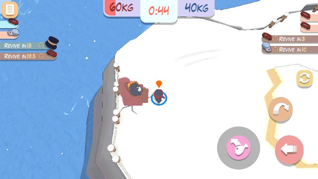 操作易上手,有攻击技能,会有CD时间,不同的企鹅有着不同的技能表现形式,在关卡开始之前,你可以选择不同企鹅是负责攻击还是防守等,你可以随时切换企鹅,同时把对方的企鹅可以撞到海里,对方减员有CD复活时间,在这之中获取优势一鼓作气赢得胜利。