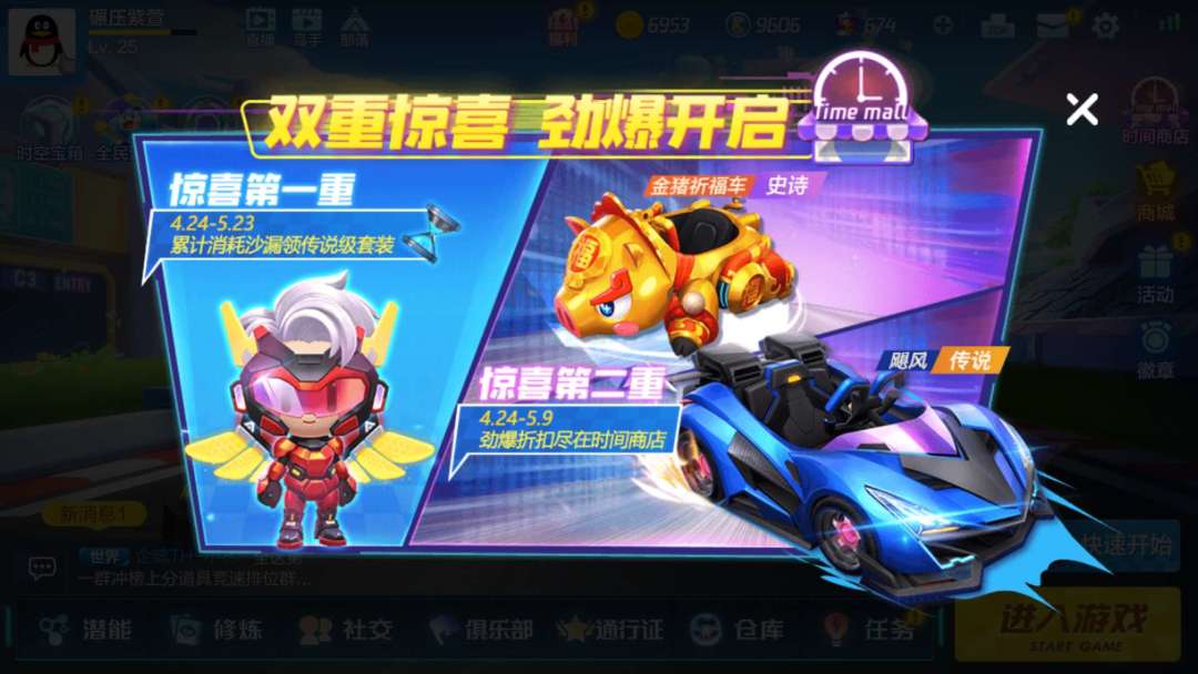 本次时间商城中最最吸引眼球的当属金猪祝福车与传说品质的飓风赛车。目前游戏中的传说车辆,可以直接购买的只有两辆,而且其中一辆要5.1才会开启,所以现在的传说车辆只有一辆!由此可见,时间商店的飓风可以说是独一无二且难以获得,如果你正好在时间商店刷出这辆车,并且刷到了超低的折扣,那我只能酸酸的祝福你,错过了500万彩票了!