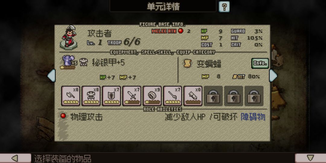 物品升级加属性,人物升级解锁新装备类型(还是要钱,而且解锁顺序还是固定的,不会因为先解锁6级或者1级,然后解锁出来的装备就类型不一样了………)