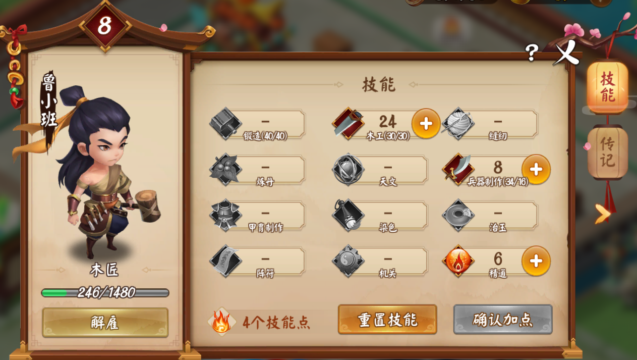 关于工匠,最多人问的就是怎么去分配技能点了,其实也不难,在前期,你的技能点是很充足的,因为你的工匠台没有升上去,你根本点不了这么多的技能点,但是到了后期你工匠多了之后,技能点的分配就尤为重要了,因为这关乎了你制作装备的速度和发展速度,所以技能点的重要性就体现出来了,因为三国的武将之间的技能点是互通的(精通除外),因为后期主升的技能点肯定是不可能全部技能都点满的,所以我推荐的就是你选择几个想要的武将,然后主升他们招募条件需求的装备技能点,然后主做这些装备。当然我知道肯定有人要问了。哇,那我只做这些装备其他装备太辣鸡怎么办呢?这就体现出了我们拍卖行的作用啦,你可以和其他玩家收购呀,或者你和几个朋友一起玩,每个人做不同的,然后互相交换,在这个江湖成为一方霸主!