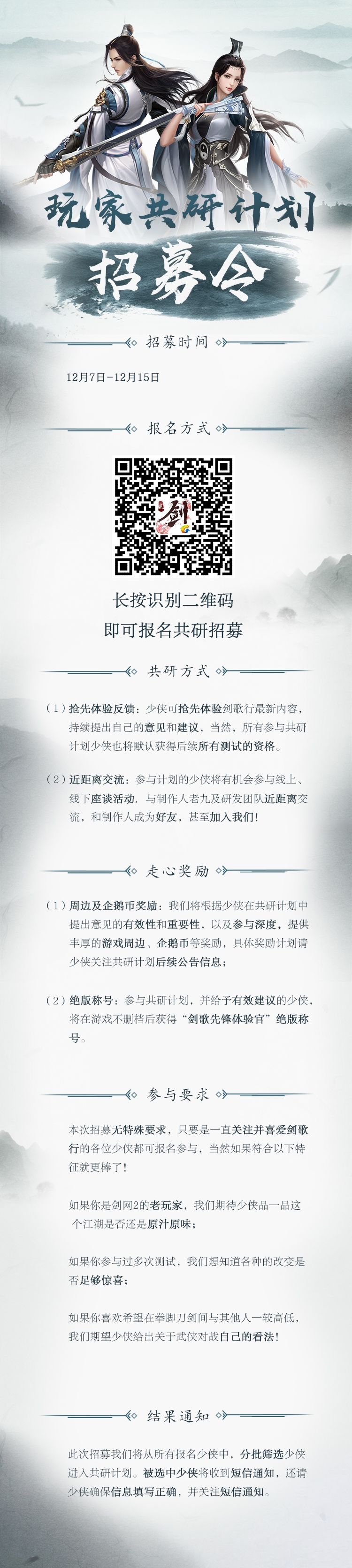 共研计划招募开始,这个江湖由你亲自打造!