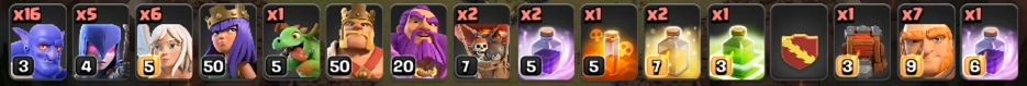 在这里,我们天使带了6个,4个给女王,2个给边路部队,这种打法都是要这么带天使的。战车里带的都是满级的胖子,法术方面带了3个狂暴法术,保证整场部队可以用狂暴法术衔接好,治疗法术2个保证部队血量。弹跳法术带一个,弹跳法术在这里是点睛之笔,因为从一开始,我们就设定好战车是一定要冲到对面大本营那里的。所以弹跳法术放那里就是为了让这一块的部队可以顺利的从墙内出来。