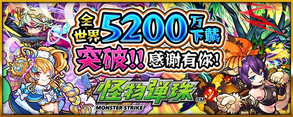 感谢各位玩家平日里的厚爱!2019年10月14日,《怪物弹珠》全球下载累积突破5200万啦!为了庆祝这个可喜的日子,游戏内将开展一系列「世界5200万人下载突破纪念活动」!