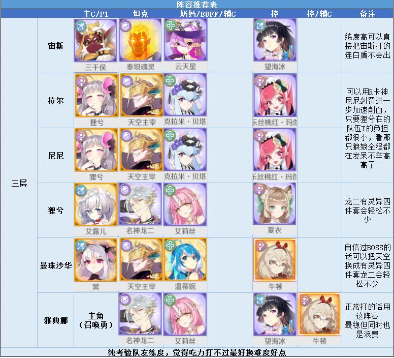 这里就放个难度8队伍阵容表参考下好了,并不一定要按照表那样需求队友,因为星印不断开放情况下能选的队友只会越来越多,并不是非要特定队友才能攻略