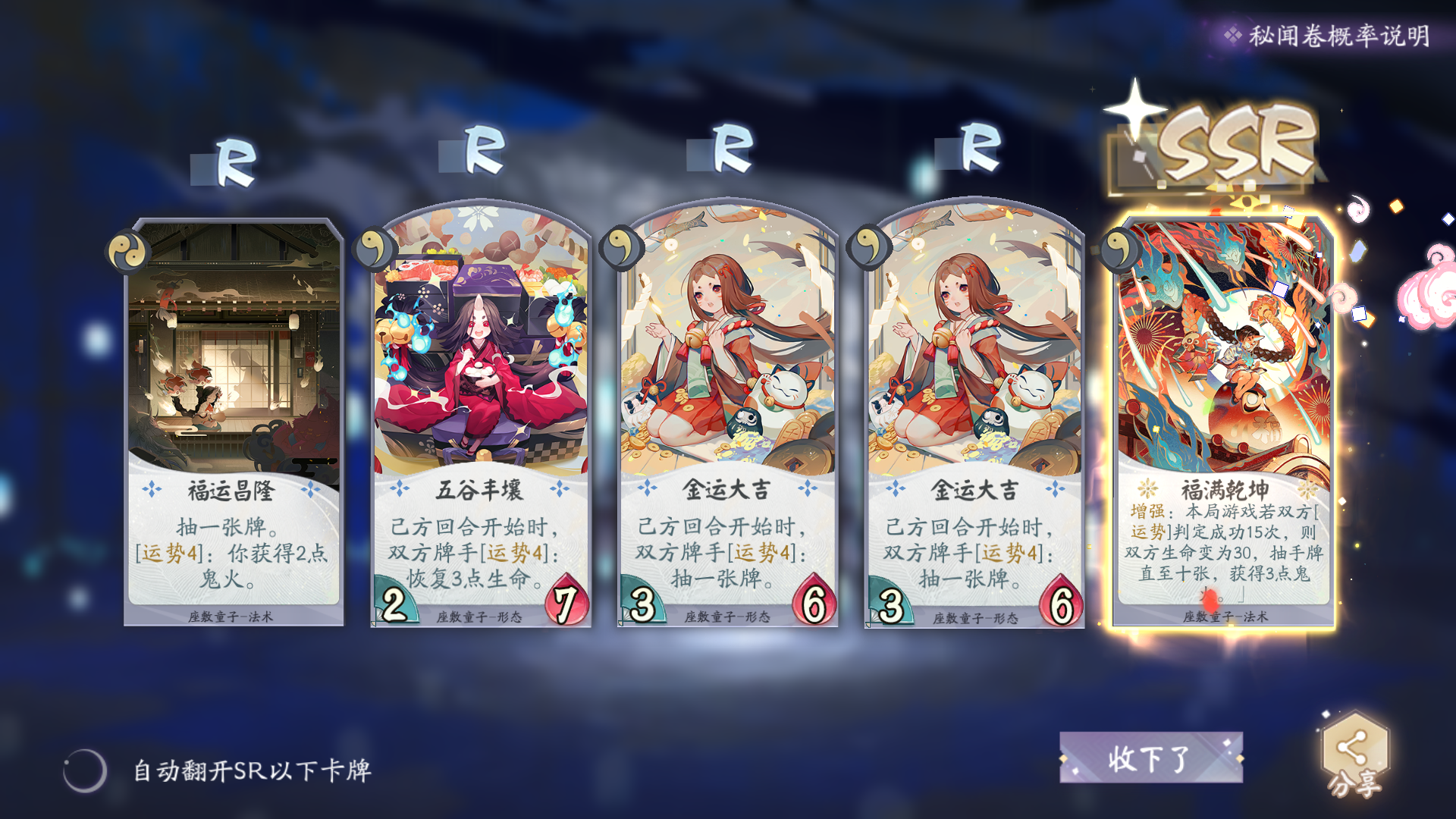 玩了三天抽了4个ssr,许愿茨木酒吞都也没出,我是不是该改行玩色子队了。。。