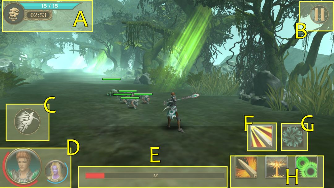 D:玩家在每次战斗中是可以上场两个角色,一个是先出战,另一个是休息状态,点击这里可以换上另一个角色,并且下去休息的角色会根据时间慢慢恢复生命值。
