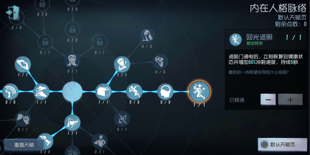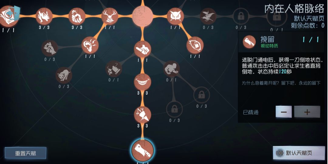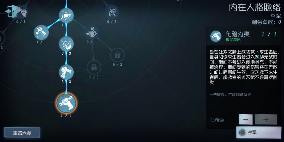 另外想救人就最好带上天赋搏命挣扎,就是天赋页最下面那个大技能,可以让自己和队友安全逃生20秒拖延时间,期间不会被打倒!20秒后倒地生效(具体去游戏中看)非空军救人,最好有搏命,必须抗刀,不然只是加速队友死亡(在椅子上过半血以后再上椅子直接飞天)