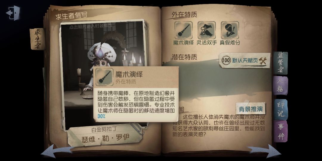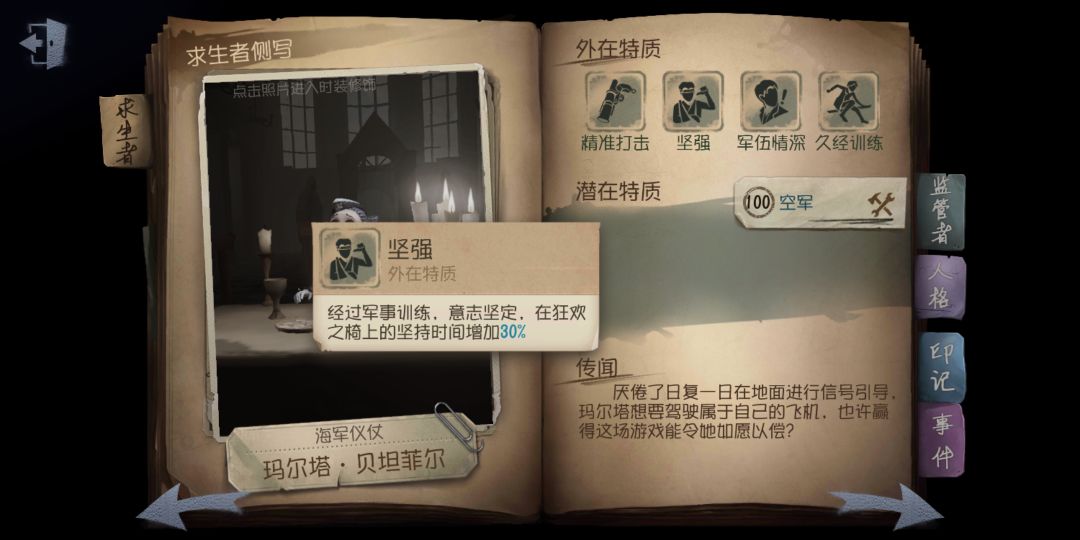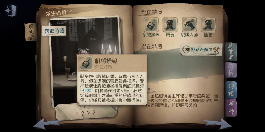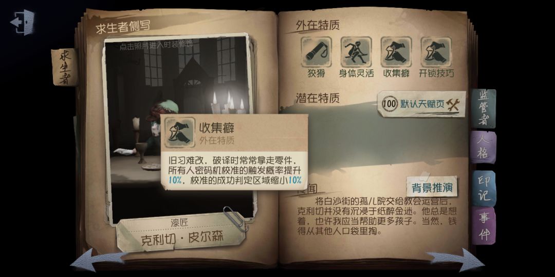 要玩求生者,首先要做的一点是,了解每个求生者的特长和弱点,这个可以在每个求生者的界面里详细查看。如果攻略里有的内容看不太明白,可以去游戏再看一下相关内容再回来看,会有更多收获。
