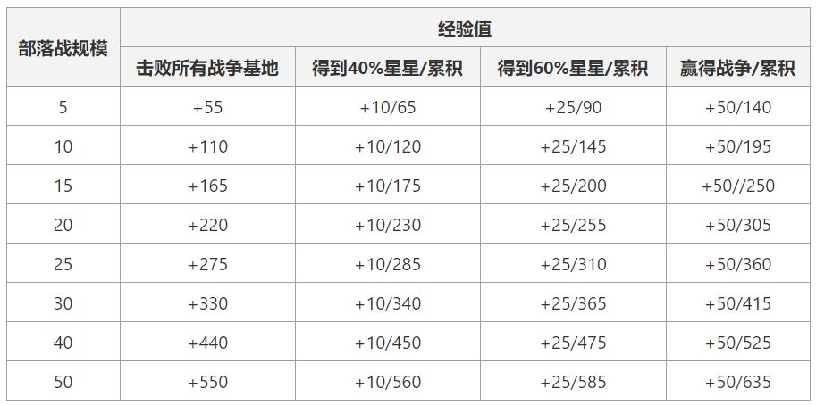 每场部落战可获得的最多经验