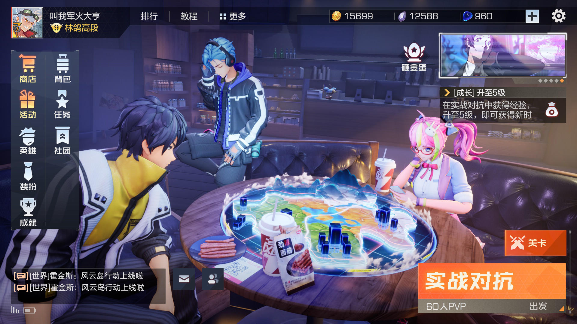 玩家扮演的是游戏里的一群电竞天才少年,通过尖端科技,从现实世界,把脑电波接入到虚拟的、数字化的风云岛世界,然后发动英雄超能力,一战高下。