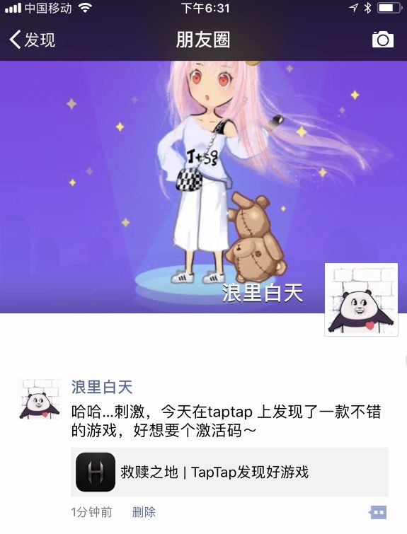 例如:哈哈…刺激,今天在taptap上发现了一款不错的游戏,好想要个激活码~