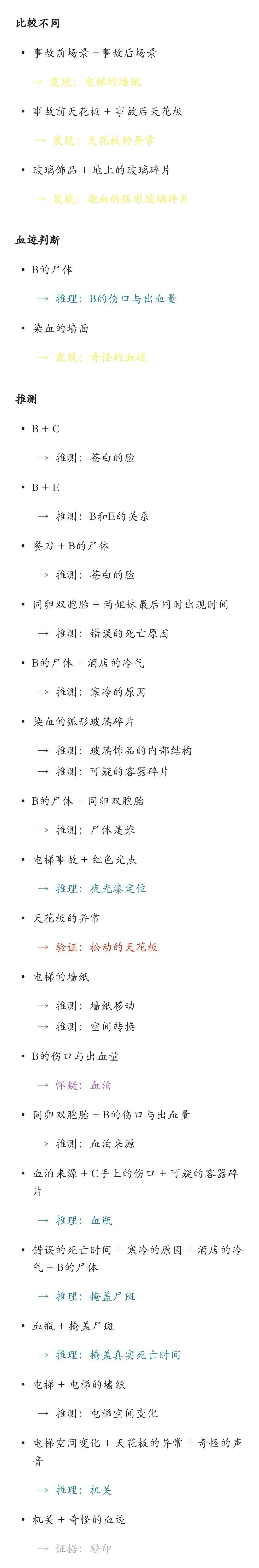 虽然电梯事件只是热身关卡 也难的我绞尽脑汁 用时两个多小时才通关ԅ(¯ㅂ¯ԅ) 坐等case1更新的我为了维持对这个游戏的热情 为大家送来一波线索组合攻略 另外大家有什么游戏操作方面的疑惑也可以来帖子下面交流 加油(ง •̀_•́)ง