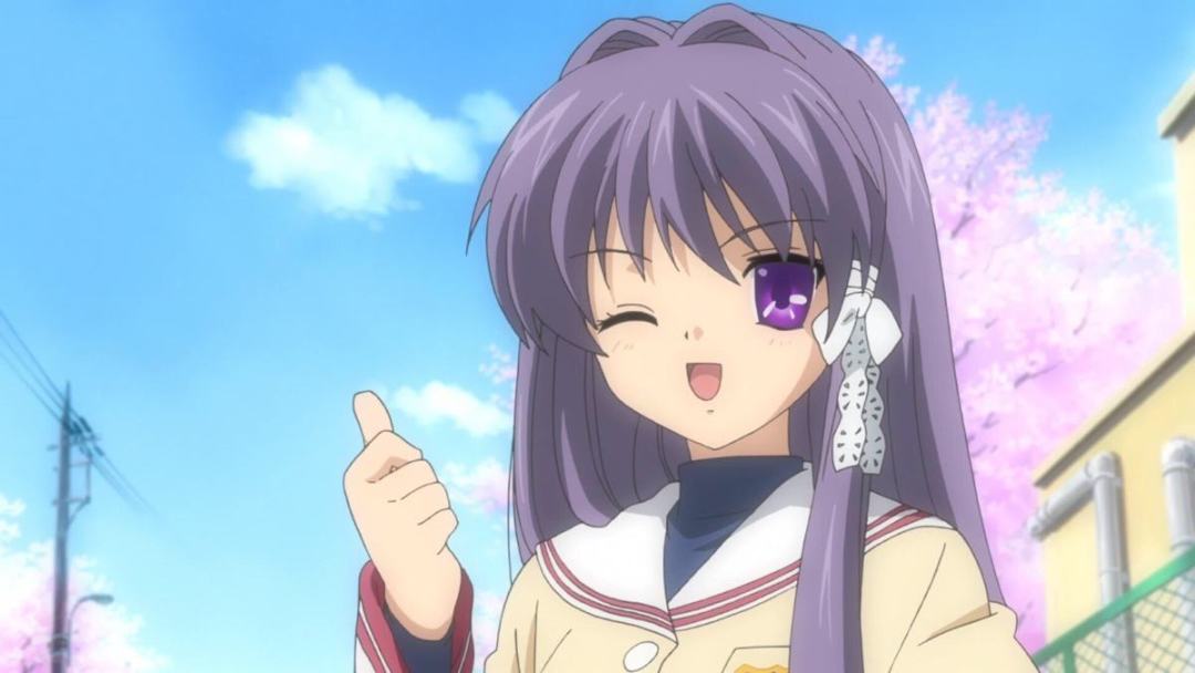 某天的上学途中,在樱花飞舞的坡道上,他邂逅了一名少女——古河渚,从此他的生活发生改变。渚因病休学一年,重返校园的她对周围环境感到相当不适应。她想加入戏剧部,然而戏剧部早已休部。朋也决定帮助她一起开展戏剧部的活动,二人关系变得越发亲密。