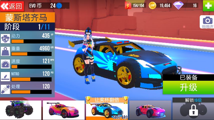 刚刚开箱子把蓝发妹子(的车)弄到手了