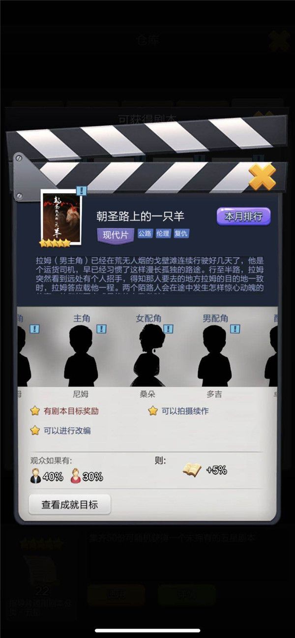 影片类型为冒险片。据小编仔细观察研究,指导片分页合成的四个剧本中,除了《朝圣路上一只羊》外,似乎其它三个剧本并没有那么好上阵艺人,尤其对于拥有六星殿堂级艺人的玩家朋友。