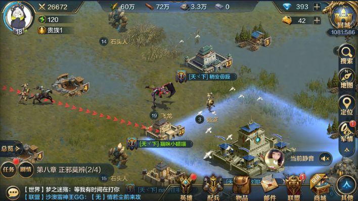 相信主君都有过在地图上找其他主君城堡的位置,但是无奈根据其他主君给的(***.***)的坐标,不断的在地图上滑啊滑,滑了大半天,也没有滑到对应坐标的确定位置。其实有个小技巧,世界地图的右边就有搜索、地图、定位、军情等图标,选择地图,输入相应的坐标,就可以直接搜寻到其他主君的位置,搜索的图标还可以用来查找资源、野怪以及探险遗迹,合理利用这些功能能剩下很多时间哟。