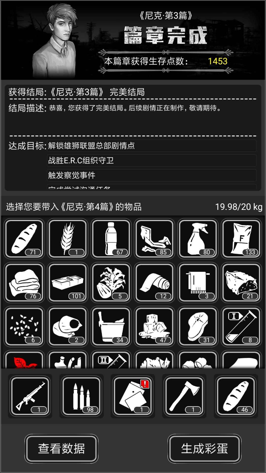 完美结局:剧情资源点全收,怪全刷,第二篇带过来的照片貌似没用