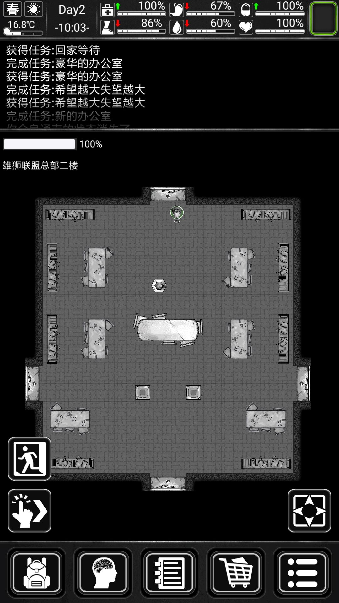 二楼--------------上:一楼入口,下:联盟长办公室(兰伯特),左:外联部(尼克),右:研究部