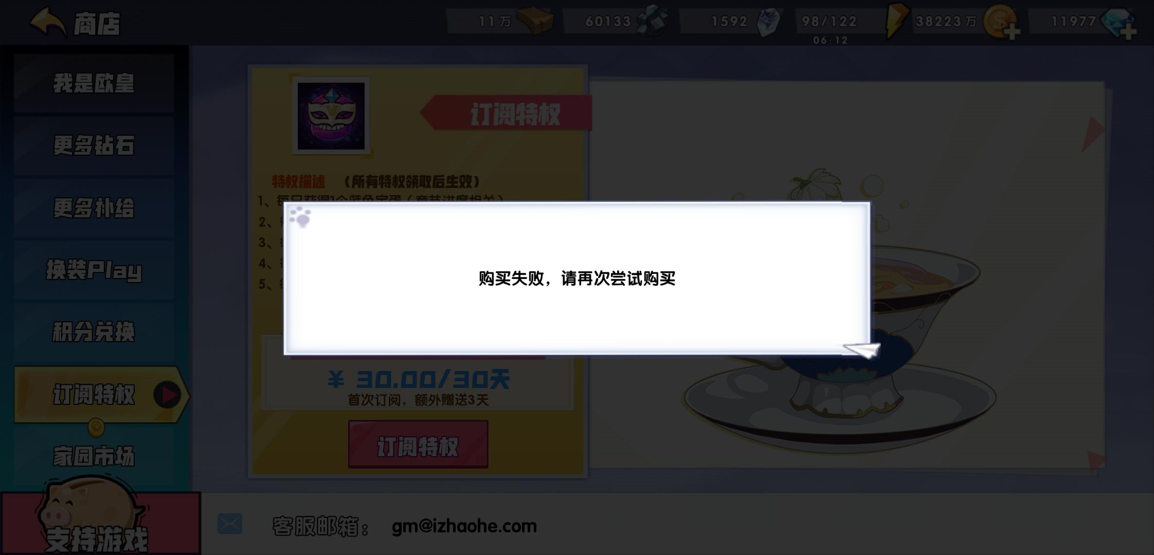 订阅特权 已付款但显示购买失败
