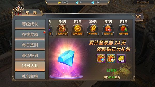 连续14天,每天登录都能领取豪华礼包。
