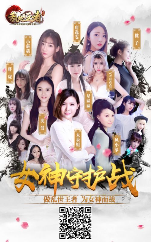 谋天下,做王者,英雄立于乱世,怎能少了佳人相伴?6月30日-7月1日,沈曼、大表姐等16位当红女主播将参与腾讯首款战争策略手游《乱世王者》女神守护战活动;届时女神们将开启全网直播,通过歌曲、舞蹈、趣味段子等才艺进行比拼;粉丝们亦可打开手机QQ扫描图中二维码来为自己心仪的女神加油助威,同时还可加入女神的联盟QQ群获取女神发放的万元红包雨!活动结束后,人气第一的女神将为《乱世王者》献唱主题曲!