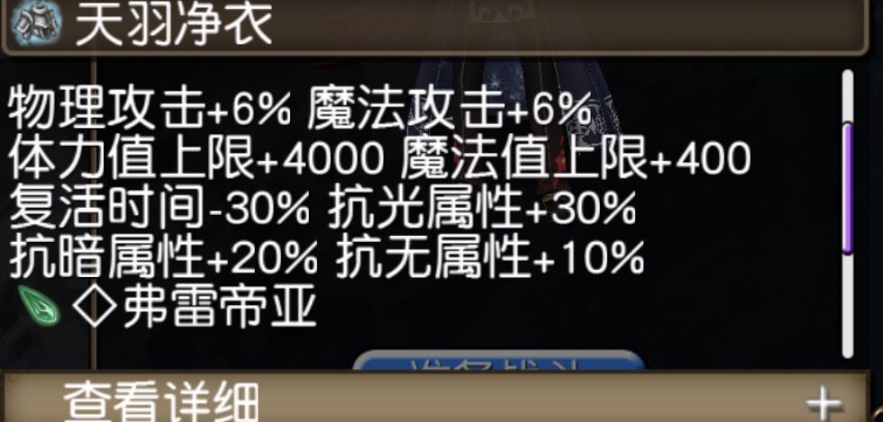 接下来是衣服,有条件双孔的,可以加一个魔偶(不是很推荐) ,然后坦衣推荐,天羽,我们对比一下77法衣和天羽,首先,天羽自带奥恩血量死菇蓝量效果,所以可以使用的王石是重装,约克 ,首先是15%魔攻,而77带奥恩重装则是12%魔攻7%智力,所以不需要暴击叠伤就用天羽,假坦则用百暴拳加天羽,然后天羽我准备了两套,一套重装一套轻装
