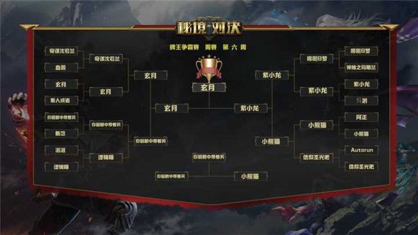 紫小龙起手碎星锤,过牌控制充足,4费直接2费巨人接净焰投掷解掉了玄月的诱捕诡雷,不过玄月仍然通过军旗的buff解掉了第一个巨人。紫小龙过牌稍微放起了节奏,而玄月抓住机会各种冲锋生物开始打脸。之后的节奏就是玄月各种冲锋打脸而紫小龙疲于解场。最后玄月用若安配合军旗打出了最后一点伤害,赢得了胜利。