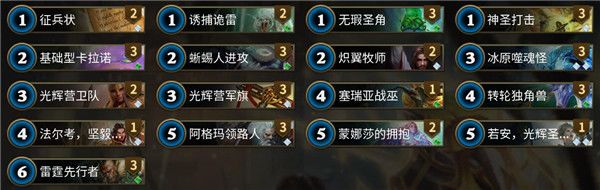 镜像对局双方也是镜像开局,都在1费延迟征兵令2费召唤2个衍生物。不过玄月使用了炽翼牧师,用己方的衍生物白吃了对方的衍生物,在攻击频率上取得了较大的优势。随后双方互换场面,直到紫小龙用一波雷霆扫荡基本解光了对手的场面。因为玄月摸到了2个无暇圣角,多以有比较大的卡差优势。很快紫小龙进入了抽一打一模式,并很快倒在玄月的质量生物下。