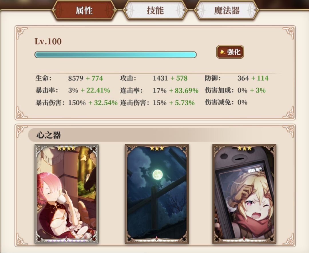 魔法器需要堆的就是基础攻击%、连击伤害%、固定攻击力、伤害加成%