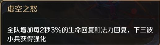 虚空毁灭者:8分钟刷新,死亡后5分钟复活。(8分钟至游戏结束存在),击杀后全队获得金币和经验收益,并获得虚空之怒被动效果,英雄死亡或持续时间耗尽被动消失。