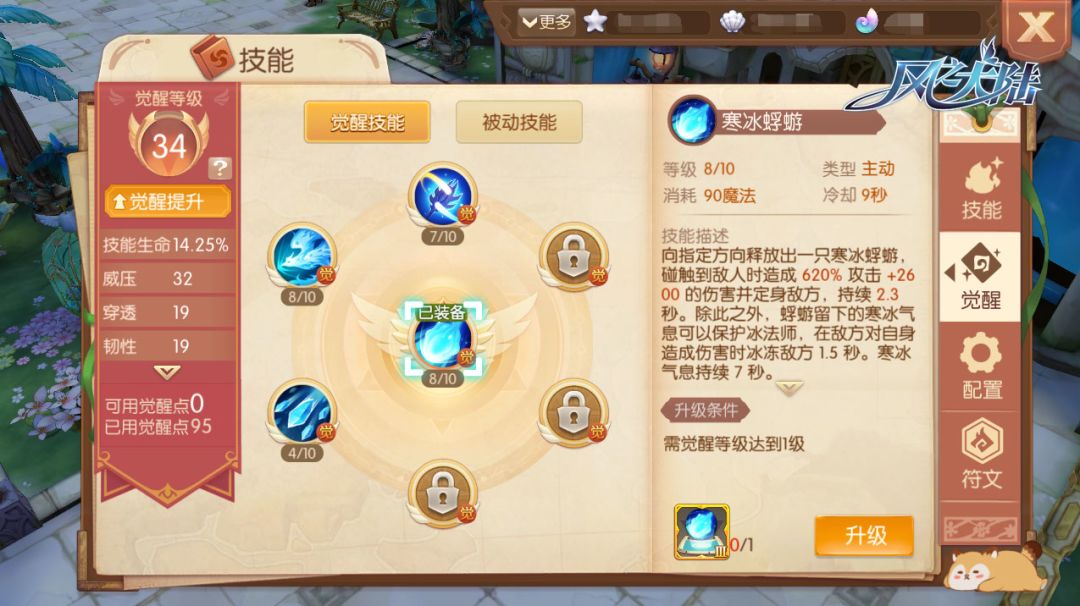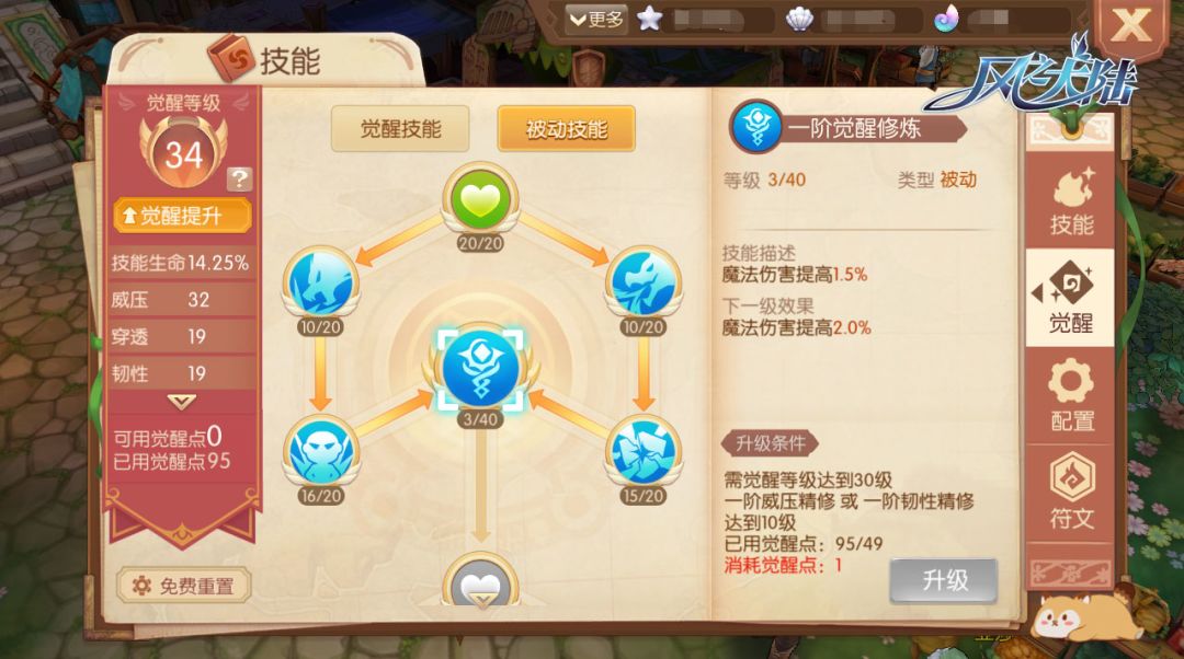 接下来,让我们看一下完成觉醒后开放的觉醒技能与符文系统。