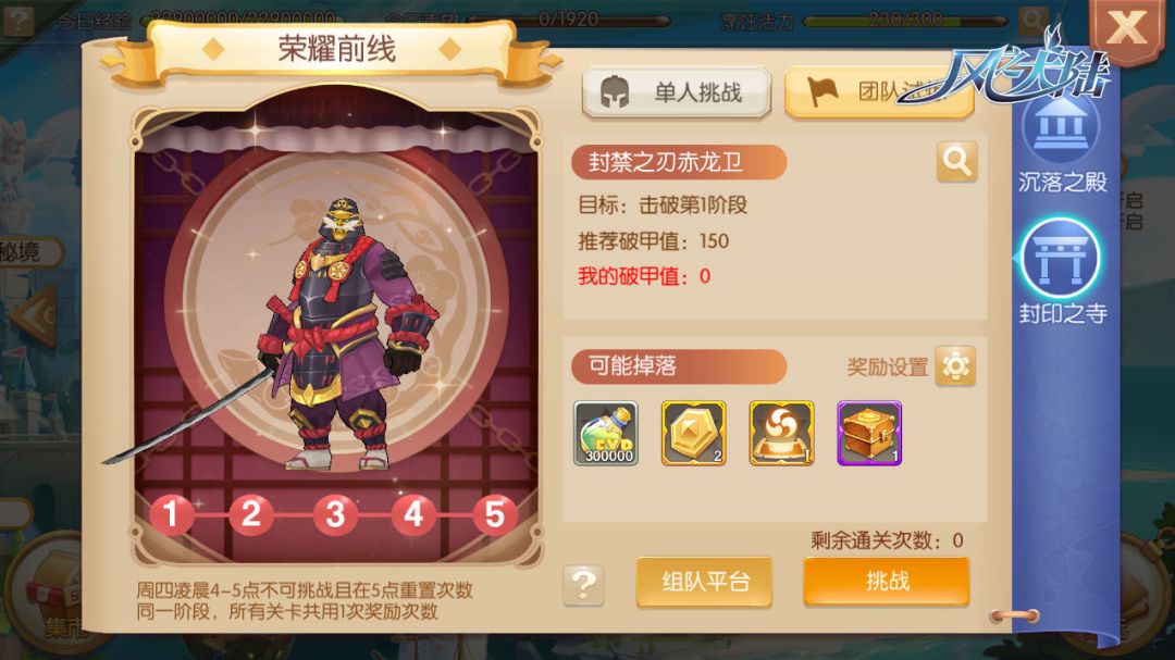 在换好破甲魂卡后,大家就可以根据队伍实力挑战荣耀前线。荣耀前线团队试炼的所有Boss都共享一次奖励,大家可以根据自身需要设置奖励。