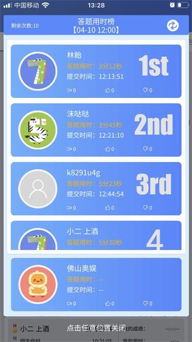 用户答题后系统会根据物理时间和答题时间分出排名,根据排名奖励积分,积分会以日,周,月为统计标准分出相应积分榜。