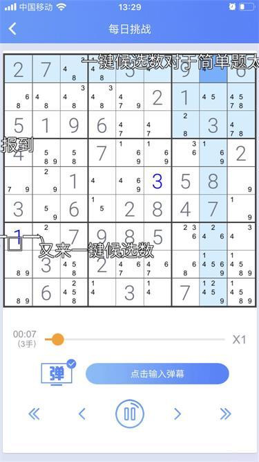 来,今天就来满足一下大家的好奇心。为了加强各位数独爱好者的互动性,《数独高高手》研发团队特意在“大神录像”功能中添加了弹幕功能,让大家在观看录像的时候畅所欲言;