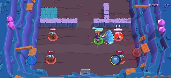 如在整蛊大师这张地图中,要想吃到宝石只有两条路,并且两条路的入口处都有草丛,这对罗莎来说是十分大的优势。藏在这里的草丛中,注意躲避敌人的试探,在将你赶走前,地方后排是不敢接近草丛的,这样一个人就守住了一边,其他两个队友只需要把守住另一边就好,大大减轻了队友的压力。
