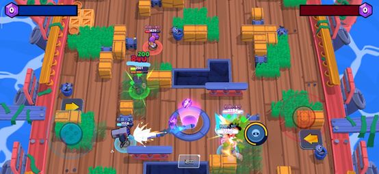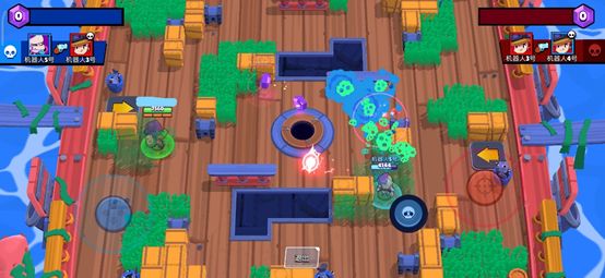 如在超级体育场这张地图中,左边的草丛是最佳的藏身之地,因为刚开局两边射手互相进行试探,附近只有左边两个木桶,会下意识地把这当作掩体,而罗莎只要在敌方向掩体靠拢的时候发起进攻,大多数的情况下都能收掉敌人。此时敌方左边空了出来,配合队友传球可以轻松完成进球。